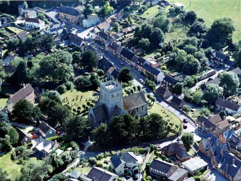 An Aerial view of the church and the high street.